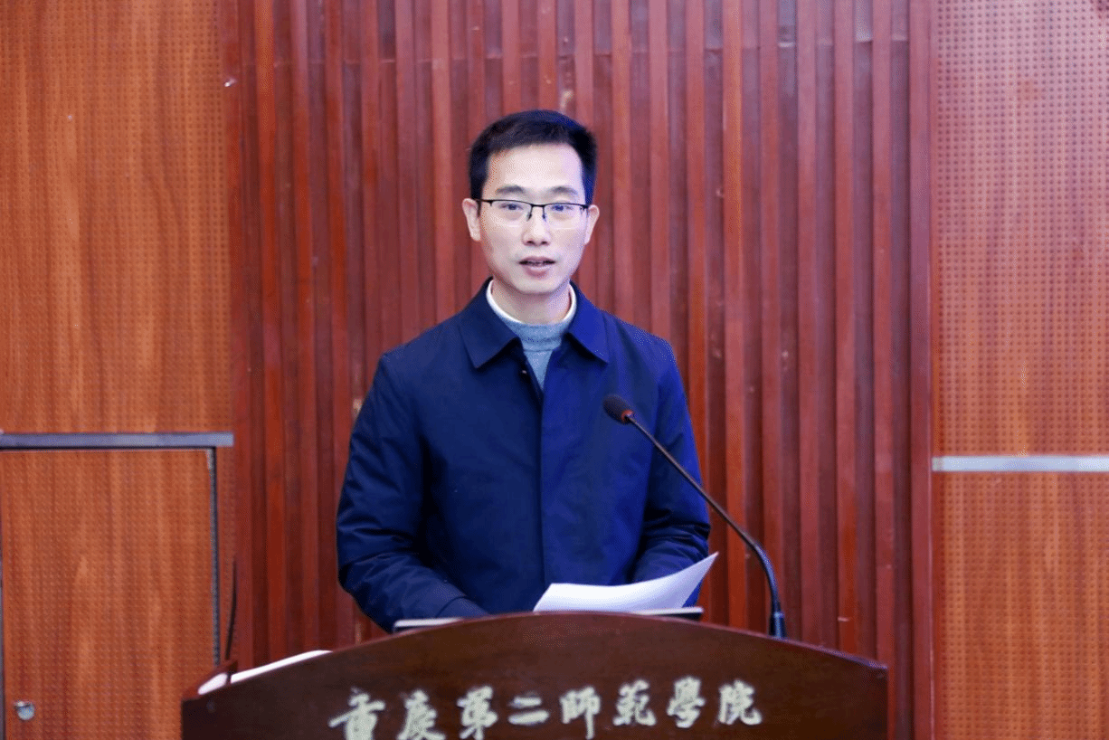 重庆第二师范学院校长万书辉代表学校党政向重庆市教育学会戏剧教育专业委员会的正式成立、向当选的第一届理事会全体同志表示热烈祝贺,对重庆市教育学会以及各会员单位表示衷心感谢!他表示,戏剧教育是美育教育的重要内容,学校将把支持专委会的工作、加强戏剧教育专业建设纳入学校重点工作安排;学校统筹相关资源,将把大中小思政一体化建设、政校企行协同、国际交流合作等资源链接和赋能专委会建设;依托学校戏剧教育专业建设成效,积极整合会员单位戏剧教育资源,形成可复制、可推广的做法,把专委会建设成果多方参与、相互成就的平台。