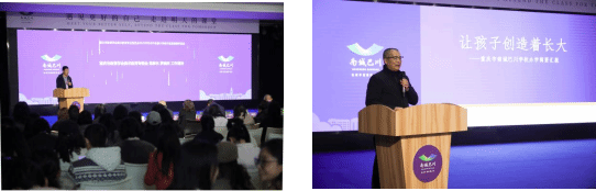 美术教育专业委员会理事长、重庆师范大学美术学院院长罗晓欢在会上作了年度工作报告,他从团队建设、制度完善、平台搭建、资源挖掘等多维度总结了美术教育专委会过去一年的工作,并勾画出了专委会明年工作蓝图乃至重庆美术教育未来发展方向和路径。重庆市南城巴川学校党支部书记、校长郭洪博士致欢迎词,并系统阐述学校“五维自主教育”核心理念与“让孩子创造着长大”的育人导向,详细分享了学校通过项目式学习推动教育变革取得的丰硕成果。